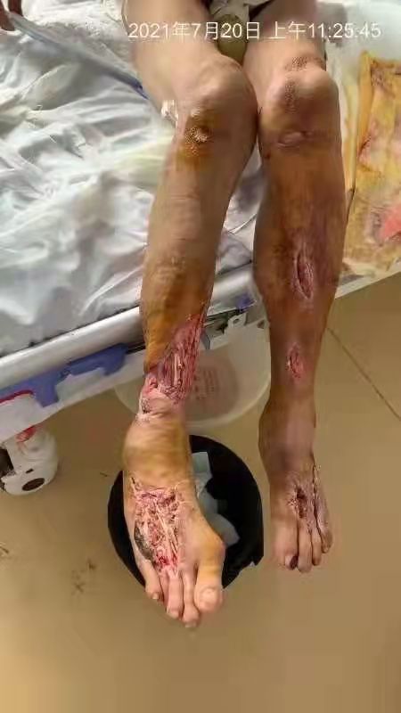 醫(yī)院集團(tuán)領(lǐng)導(dǎo)高度重視,指示一定要全力救治病人,挽救生命和肢體。立即成立了治療專家組,制定治療方案:先穩(wěn)定生命體征,營(yíng)養(yǎng)支持,一期清創(chuàng),骨折有效保護(hù),創(chuàng)面分期植皮修復(fù),積極防治并發(fā)癥。