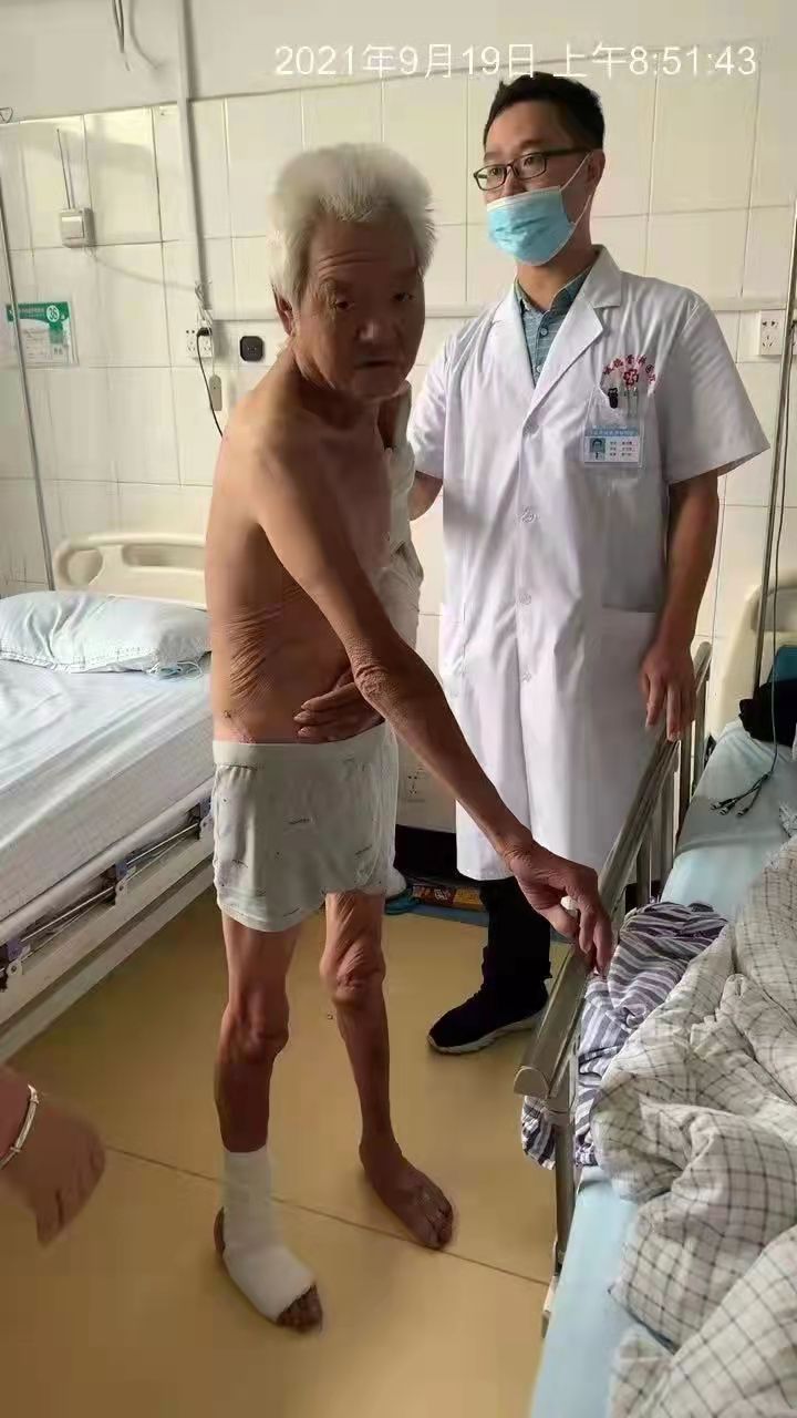 創(chuàng)傷骨科主任秦鴻雁帶領(lǐng)專業(yè)團(tuán)隊(duì),吃苦耐勞,不怕臟和累,憑借專業(yè)技術(shù)優(yōu)勢(shì),給病人最得當(dāng)?shù)闹委熀涂祻?fù),經(jīng)過(guò)90多個(gè)日日夜夜的精心治療和守護(hù),病人創(chuàng)面修復(fù),骨折愈合,病人已經(jīng)能夠行走,精神狀態(tài)和營(yíng)養(yǎng)狀況也達(dá)到很好的水平。