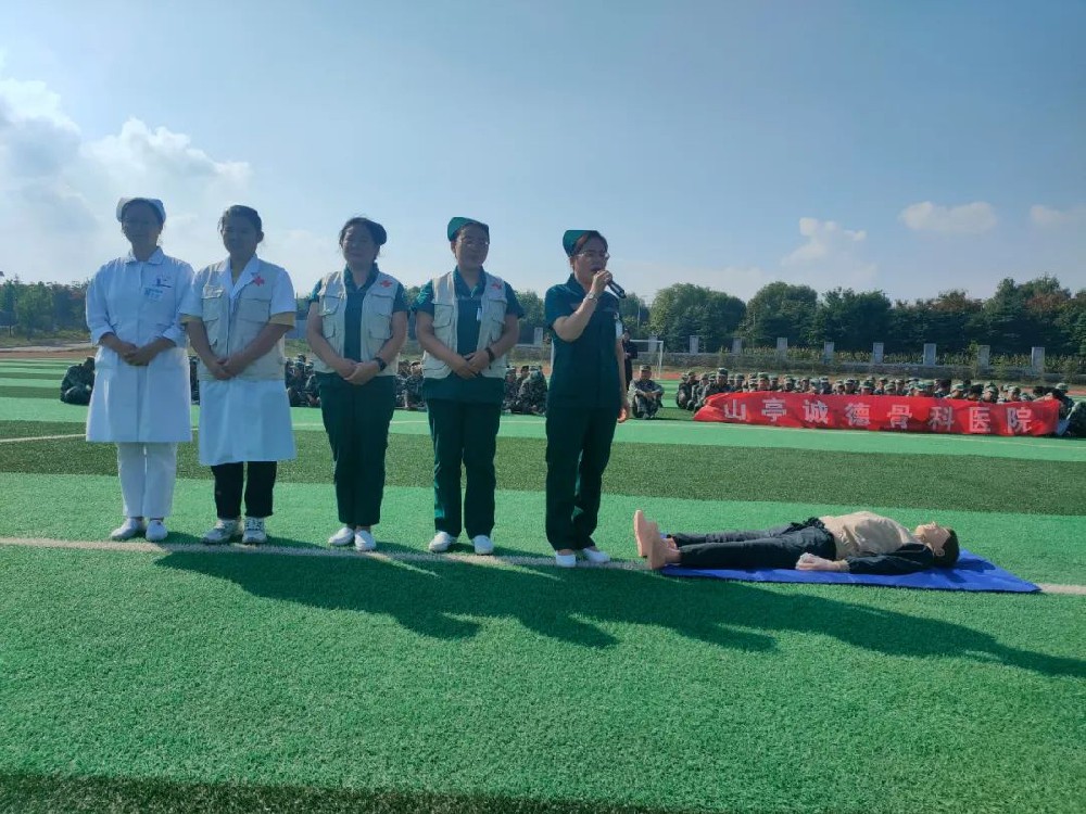 為確保山亭區(qū)職業(yè)中專2022級學生軍訓(xùn)能夠安全、順利、圓滿完成。山亭誠德骨科醫(yī)院受邀作為醫(yī)療保障單位,全程為學校師生保駕護航,并開展了現(xiàn)場急救技能培訓(xùn),為師生安全提供了強有力的保障。