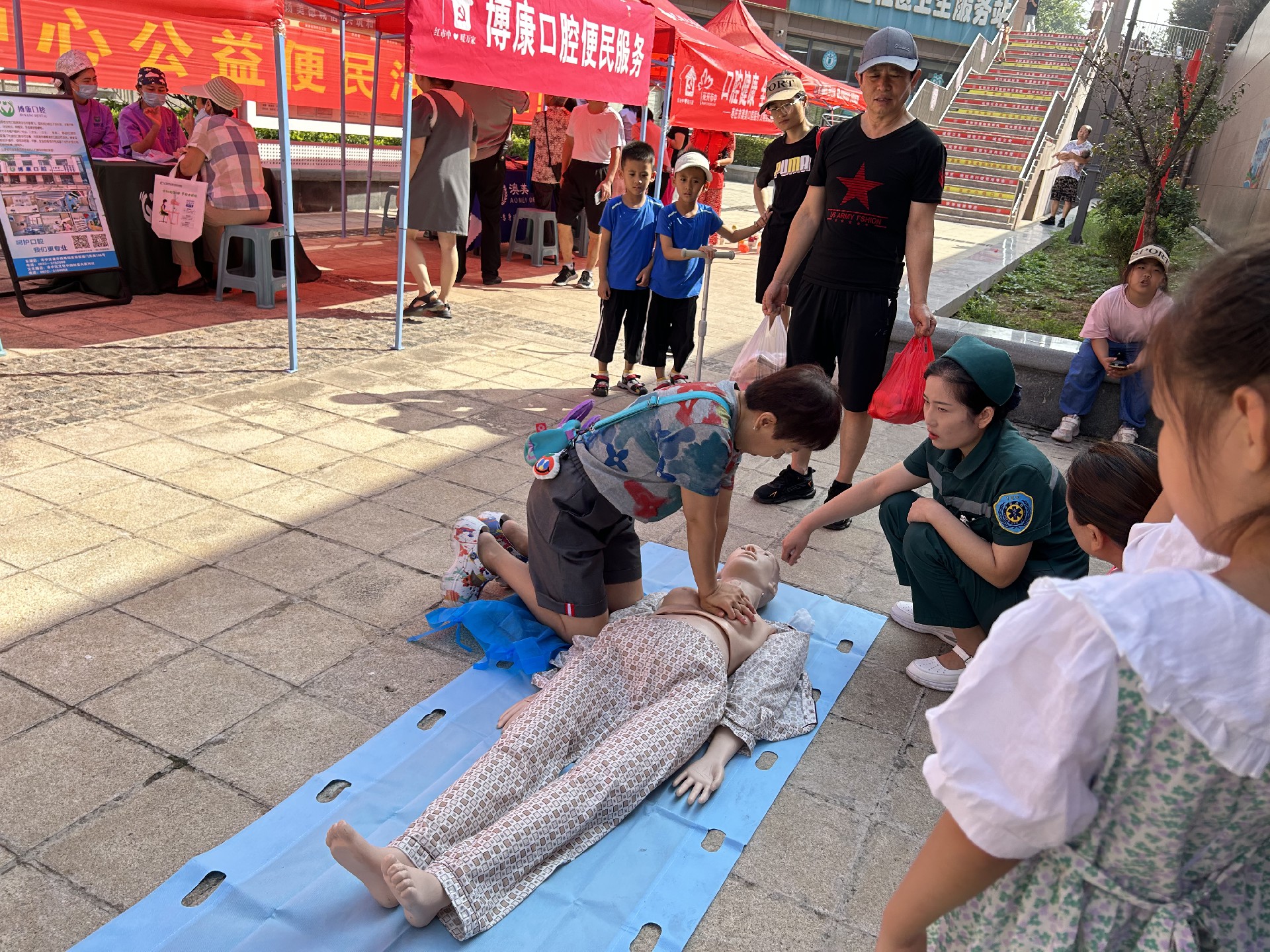 活動(dòng)現(xiàn)場(chǎng),醫(yī)務(wù)人員耐心細(xì)致的為群眾進(jìn)行血糖、血壓、骨科類等檢查,詳細(xì)解答群眾咨詢,并發(fā)放了急救健康知識(shí)科普手冊(cè)。同時(shí),圍繞“數(shù)字賦能 救在身邊”這一主題,醫(yī)院醫(yī)護(hù)人員現(xiàn)場(chǎng)演示了心肺復(fù)蘇術(shù)和海姆立克急救法,并引導(dǎo)在場(chǎng)群眾實(shí)地操作模擬人進(jìn)行練習(xí),有效加深了在場(chǎng)群眾對(duì)急救理論知識(shí)的理解運(yùn)用。
