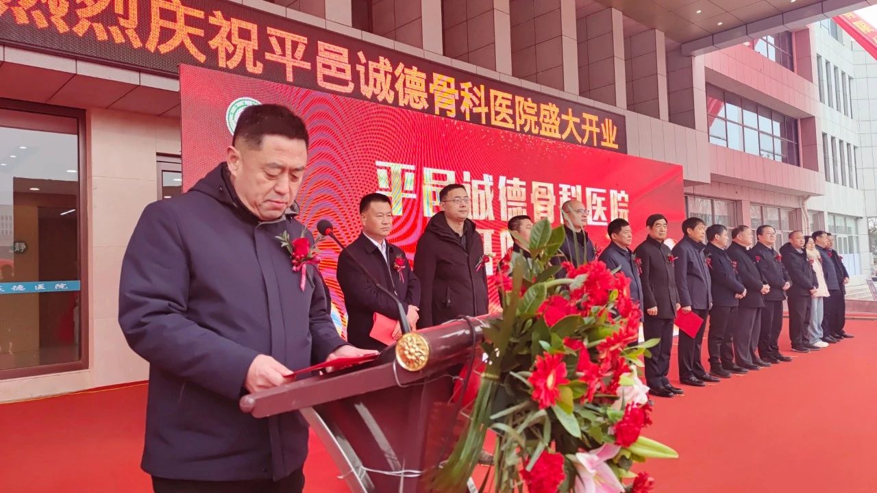 1月9日,平邑誠德骨科醫(yī)院舉行開業(yè)儀式。平邑縣人大常委會(huì)黨組副書記副主任、縣總工會(huì)主席王忠,縣政協(xié)副主席、民政局局長(zhǎng)吳慶民,縣市場(chǎng)監(jiān)督管理局黨組書記、局長(zhǎng)、四級(jí)高級(jí)主辦林國防,縣殘聯(lián)黨組書記、理事長(zhǎng)、四級(jí)調(diào)研員范增現(xiàn),縣民政局黨組書記、一級(jí)主任科員陳志宏,縣消防大隊(duì)大隊(duì)長(zhǎng)王桂濤,平邑街道黨工委副書記、辦事處主任扈偉,縣衛(wèi)健局黨組成員、副局長(zhǎng)邵康,縣醫(yī)保局黨組成員、副局長(zhǎng)趙芳等領(lǐng)導(dǎo)及誠德醫(yī)院集團(tuán)總經(jīng)理王光亮等集團(tuán)領(lǐng)導(dǎo)參加開業(yè)儀式。儀式由鄭城鎮(zhèn)黨委副書記、鎮(zhèn)長(zhǎng)、政協(xié)工作室主任張冠林主持。