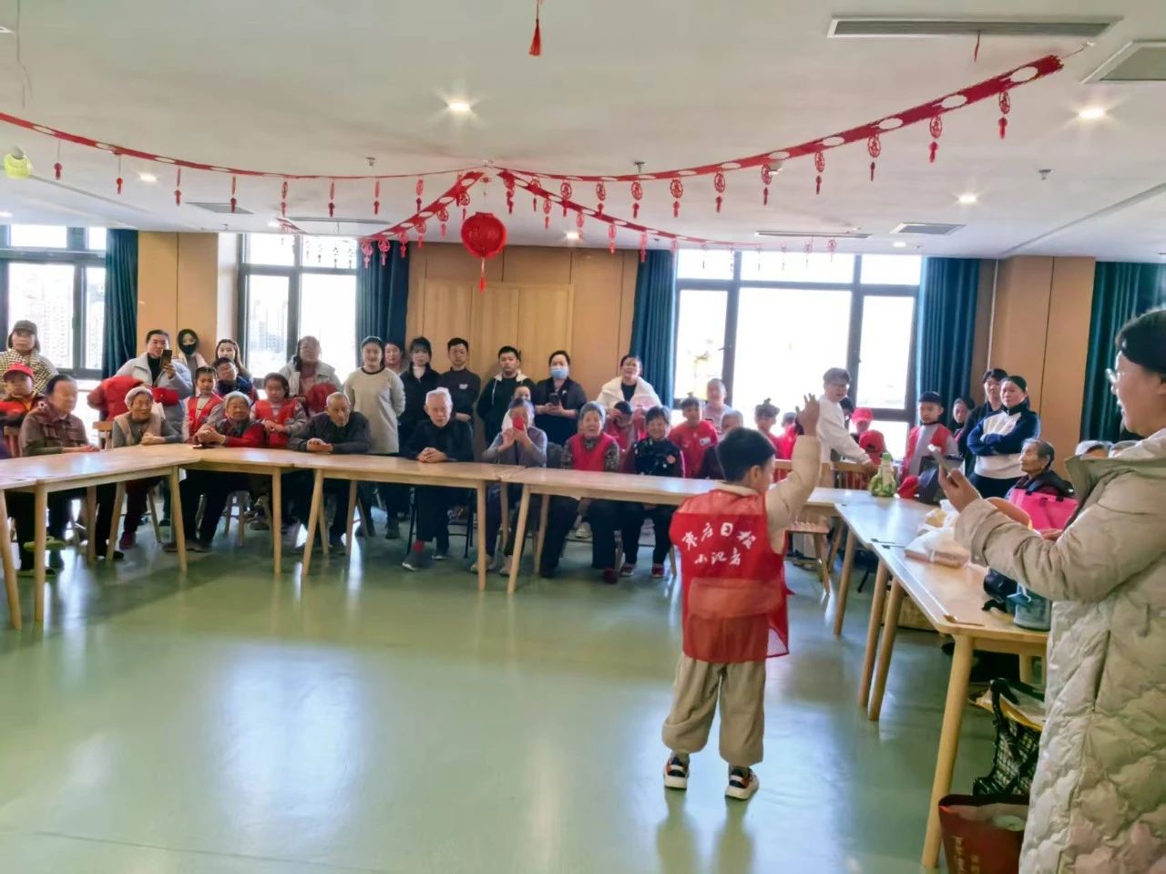 活動(dòng)現(xiàn)場(chǎng),小記者們熱情高漲。他們先是為老人們帶來(lái)了精心準(zhǔn)備的節(jié)目,唱歌、跳舞、朗誦等精彩表演輪番上演。稚嫩的歌聲、靈動(dòng)的舞姿,贏得了老人們的陣陣掌聲與歡笑聲,整個(gè)醫(yī)養(yǎng)中心洋溢著歡樂的氛圍。